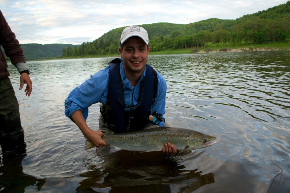Wolfgang with his 35 lb Atlantic salmon from yesterday.