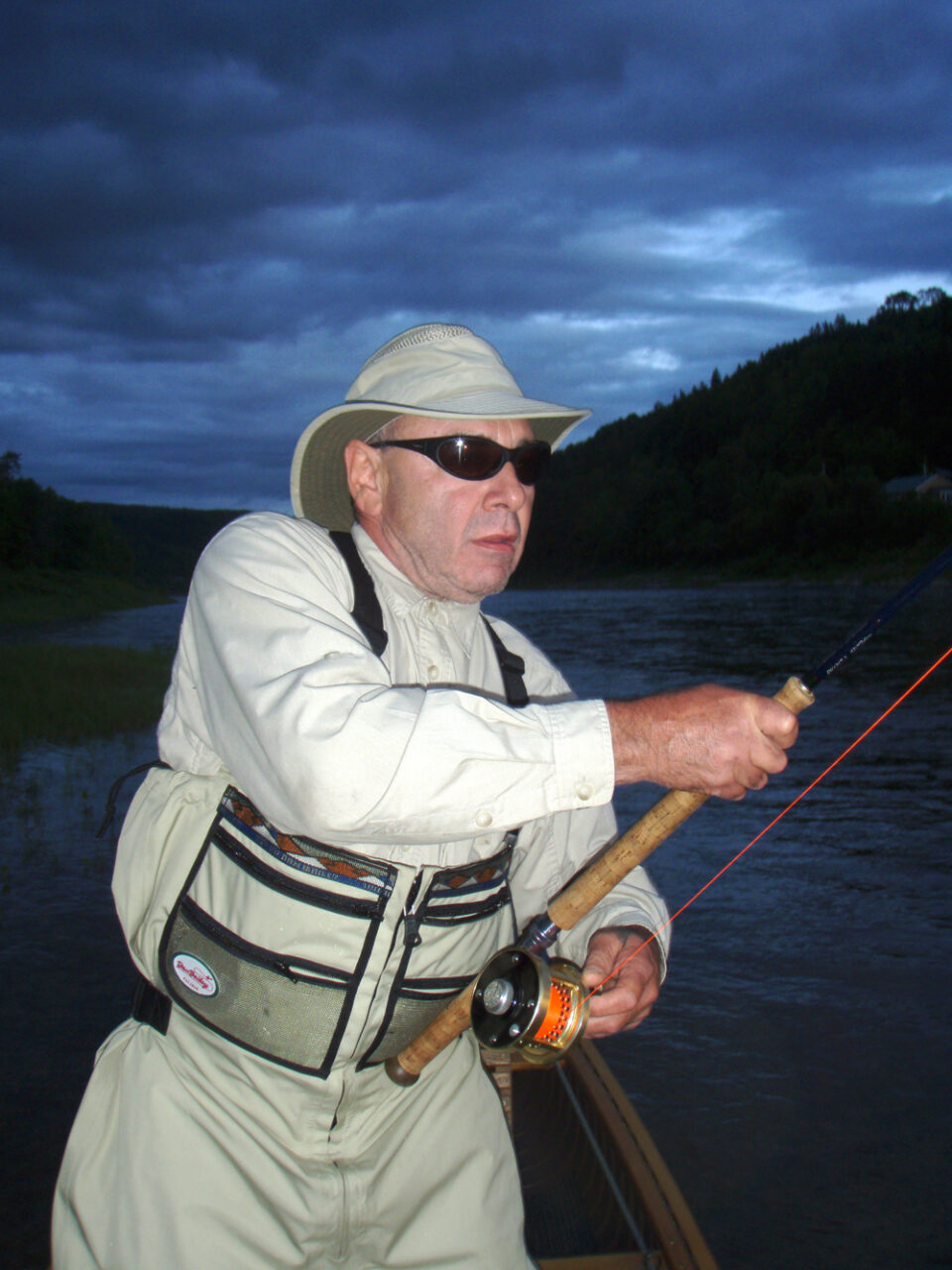 RRL guest Patrick from England fighting an Atlantic salmon on the Restigouche River. And here he is with that beautiful Atlantic salmon… KB