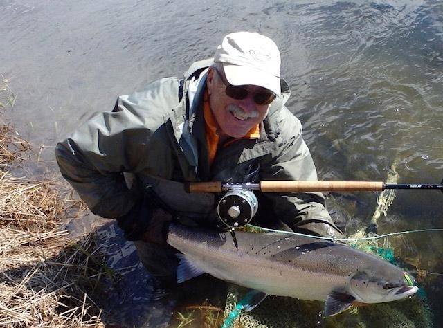 Guide Raymond and Diane with a beautiful Atlantic Diane’s husbands Atlantic Salmon