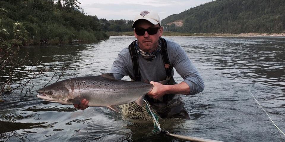 Toby with Mack’s 16 lb salmon he also managed 2 grilse. Back out tonight where some large salmon are lurking.