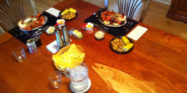 Aug22011River ReportThanks to Bill the lodge now has a bigger table to dine at. Bill does beautiful work and this table shows the time, energy and love he put into it. The lodges new dining table complete with a salmon inlay, courtesy of Bill Hartnett's craftsmanship Post navigationPreviousPrevious post:May 2012 openingsNextNext post:Ruin of Salmon Runs Took a Long Time; Recovery Will, Too